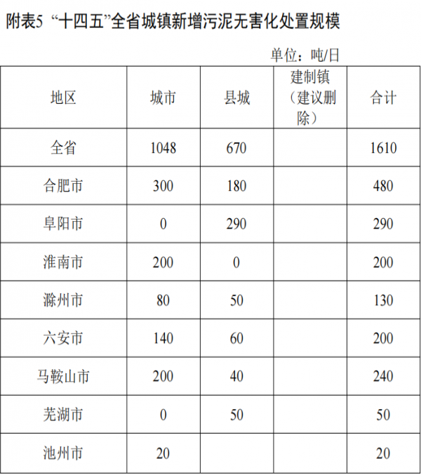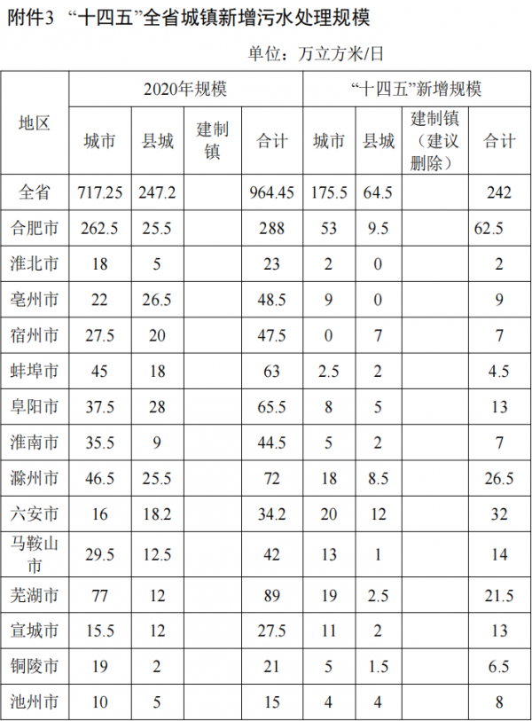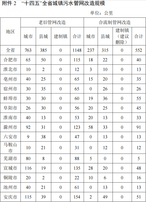 “十四五”安徽省城鎮污水處理及資源化利用設施建設項目庫